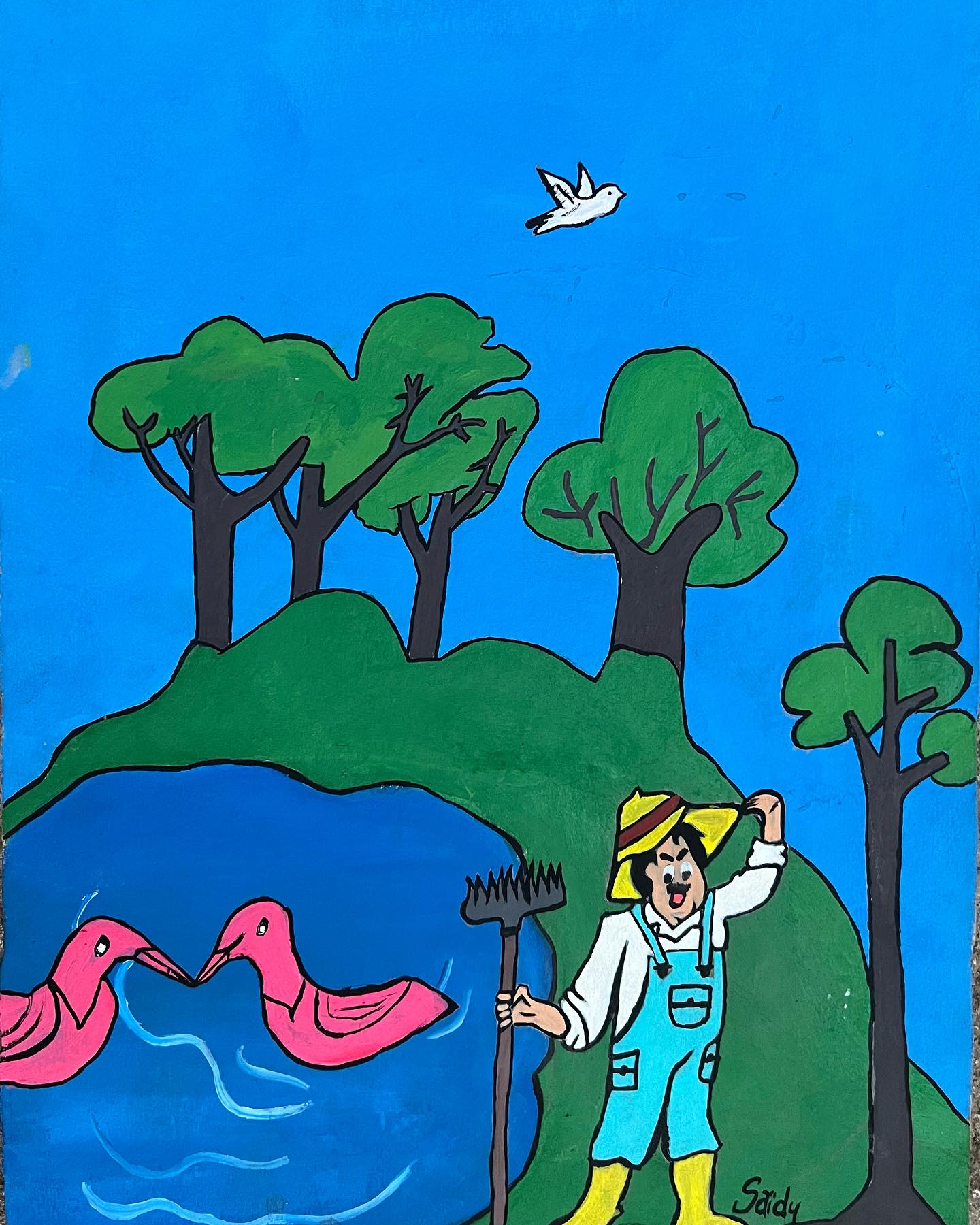 "Stunning painting by Saïdy, he’s doing a good job each time he’s creating a piece that make me so proud of him . Saïdy will participate in our exhibition to Los Angeles keep support him size:14x12 inch, age:16"
