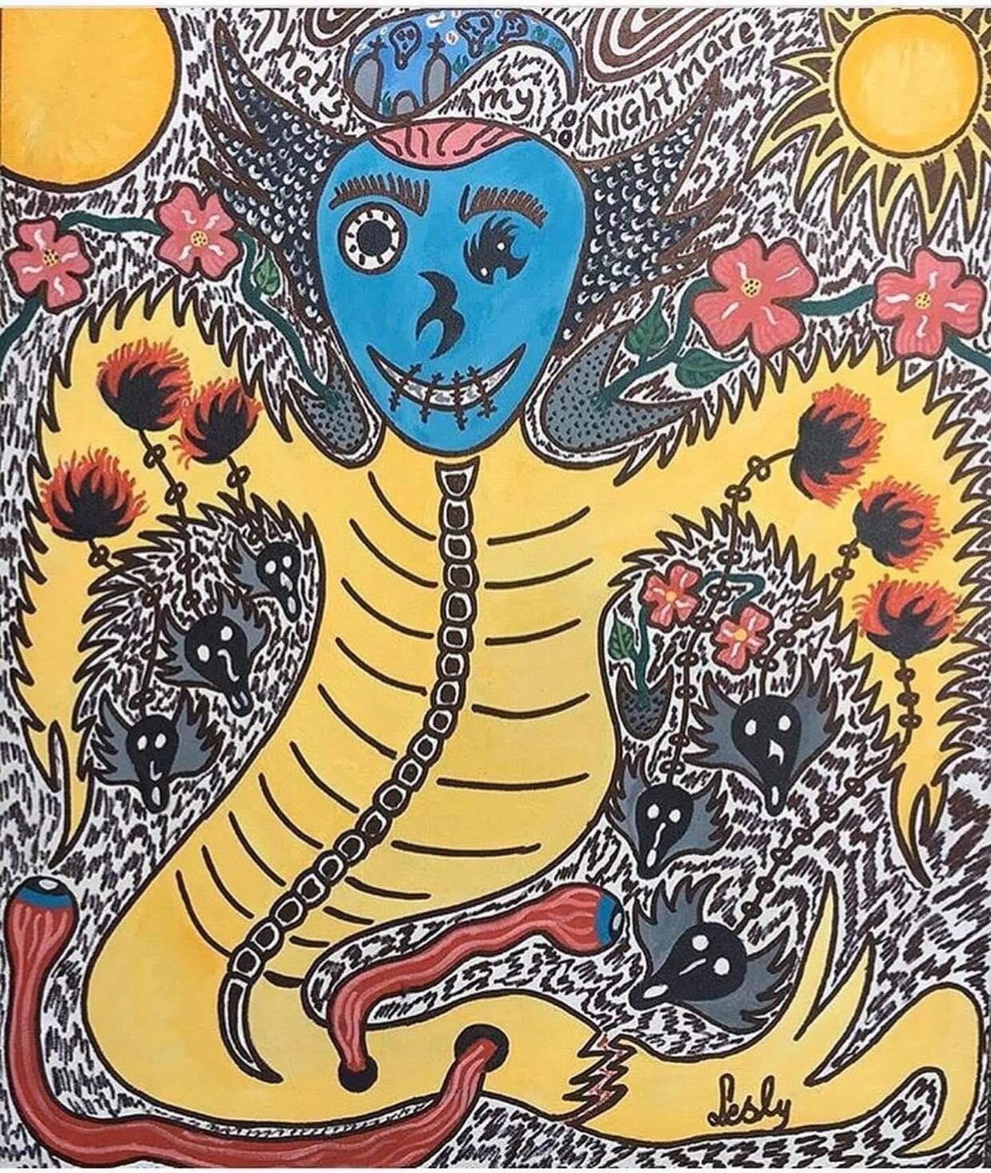 "As an artist the freedom of expression and creativity helps me to continuously create, enjoy the arts, and appreciate the creativity of other artists. This helps me explain my ideas and feelings through my art. That’s what makes my artwork mine, what sets it apart, and what makes it unique as mine. I enjoy creating mixed media pieces because that brings me versatile energies and motivates my persistent drive to create more. I can’t copy others; I am only inspired. I focus on what is authentic and unique expression from within myself because I want to show work worldwide, so even when inspire I must often ignore what other people are doing and listen to my heart. I love making lines, symbols, using different colors, newspaper and pieces of canvas, and sequins through my artwork to make it more powerfully reflect my unique perspective on life, experience, identity, and values. It’s a reflection of my passions. My work not can be known by my signature but by the details I used on them like the cemetery landscapes, contrasts in the background , skeletons, different representations of Haitian loa, and words in the background of paintings. My creation has a voodoo and natural origin. On my easel it is an entire incredible universe which takes shape through Baron Samedi, Legba, Agoué, Mother Nature, and the great cosmic conflict of God and Satan; a diverse set of subjects drawn from the pantheon of Haitian mythical spirits. As an artist I am miles away from the Western perspective. I invite with so much generosity and rebellion another consideration of figurative representation. Sometimes my painting expresses the news of times like covid19 and the earthquakes. I use acrylic paint, canvas and cardboard as a medium to enter the artistic world, which is none other for me a light and the beauty of life. "
